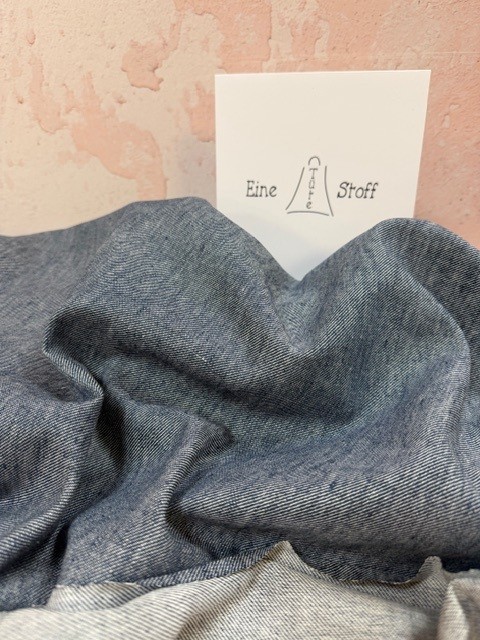Die feine blau-weiße Melierung sorgt für eine lebendige Optik mit Tiefe. Dezent genug für zeitlose Stücke, spannend genug, um nicht langweilig zu wirken.