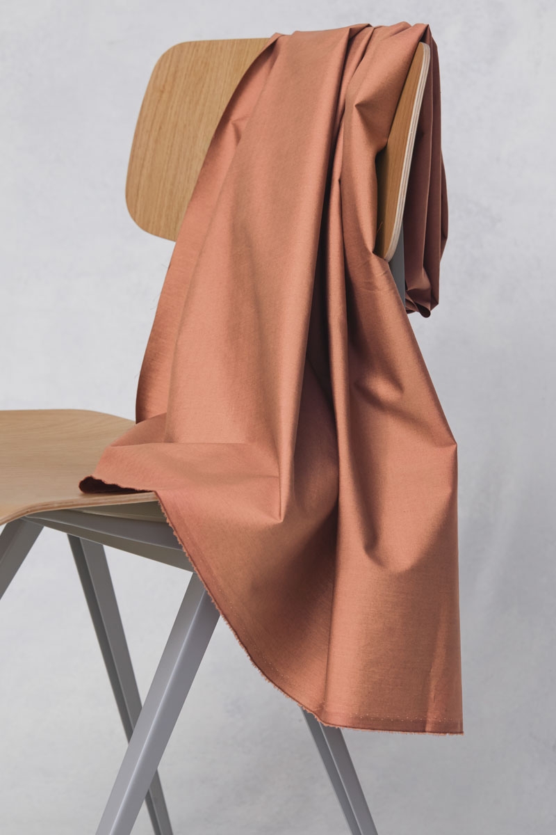 Ein fein gewebter Stoff mit glatter, papierartiger Haptik und matter Oberfläche. Durch die dichte Webart ist der Stoff besonders formstabil, dabei angenehm