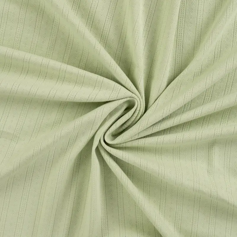 Ein wunderschöner fein gestrickter Jersey. Pointelle- Gewebe ist bekannt für seine kleinen dekorativen Löcher, die ein leichtes und atmungsaktives Gewebe schaffen.